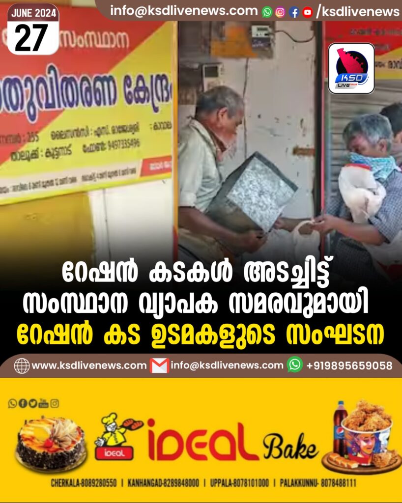 റേഷൻ കടകള്‍ അടച്ചിട്ട് സംസ്ഥാന വ്യാപക സമരവുമായി റേഷൻ കട ഉടമകളുടെ സംഘടന