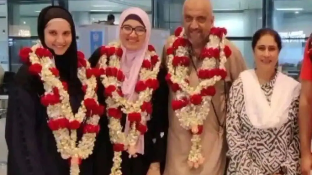 ഹജ്ജ് കര്‍മം പൂര്‍ത്തിയാക്കി തിരിച്ചെത്തി സാനിയ; വിമാനത്താവളത്തില്‍ മാലയിട്ട് സ്വീകരണം