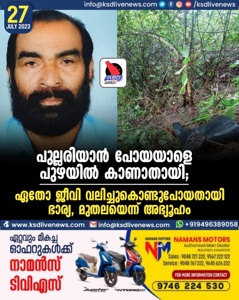 പുല്ലരിയാന് പോയയാളെ പുഴയില് കാണാതായി; ഏതോ ജീവി വലിച്ചുകൊണ്ടുപോയതായി ഭാര്യ, മുതലയെന്ന് അഭ്യൂഹം