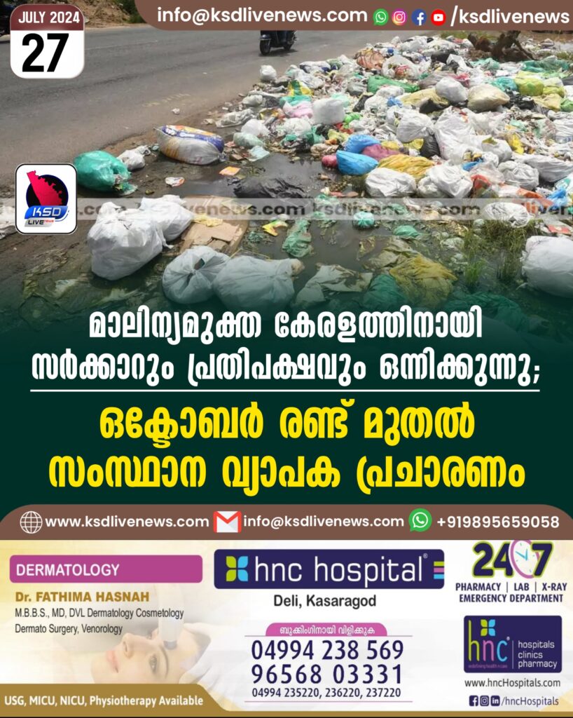 മാലിന്യമുക്ത കേരളത്തിനായി സർക്കാറും പ്രതിപക്ഷവും ഒന്നിക്കുന്നു; ഒക്ടോബർ രണ്ട് മുതൽ സംസ്ഥാന വ്യാപക പ്രചാരണം