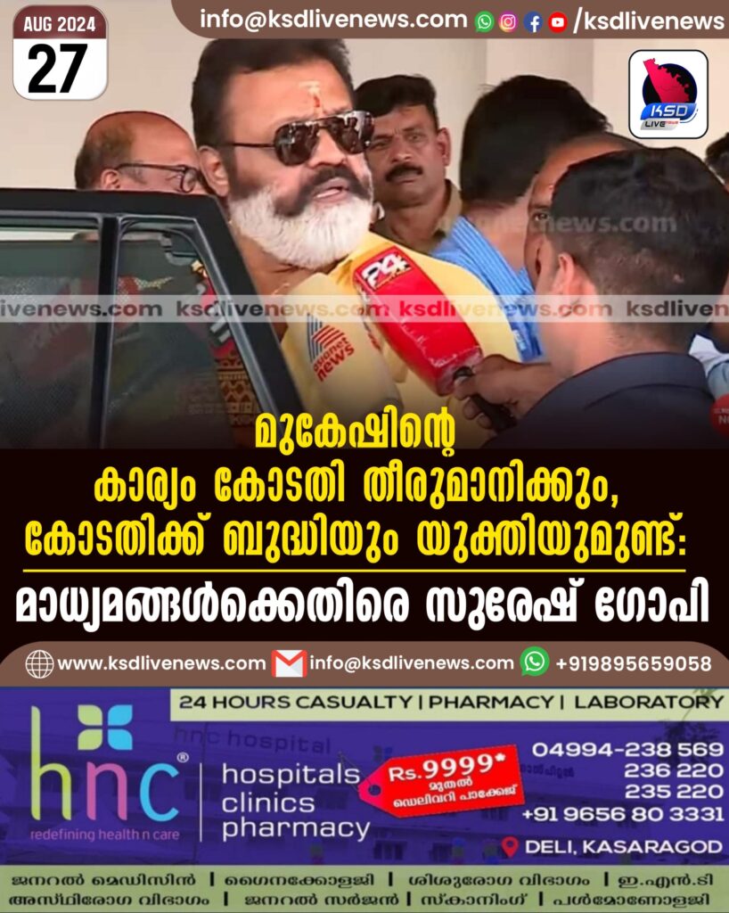 മുകേഷിന്റെ കാര്യം കോടതി തീരുമാനിക്കും, കോടതിക്ക് ബുദ്ധിയും യുക്തിയുമുണ്ട്’, മാധ്യമങ്ങൾക്കെതിരെ സുരേഷ് ഗോപി
