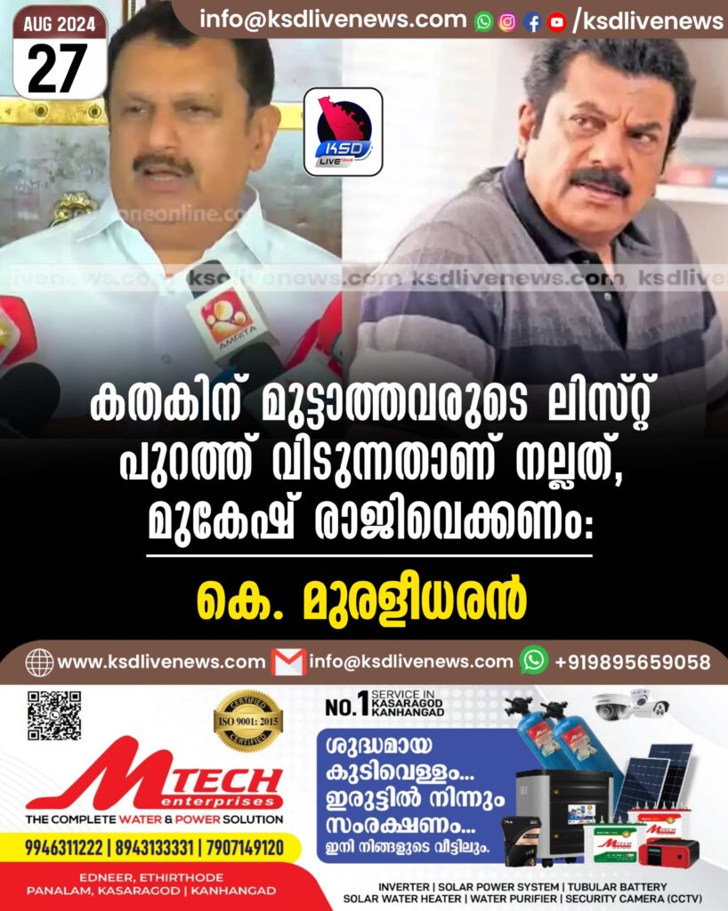 കതകിന് മുട്ടാത്തവരുടെ ലിസ്റ്റ് പുറത്ത് വിടുന്നതാണ് നല്ലത്, മുകേഷ് രാജിവെക്കണം: കെ. മുരളീധരൻ