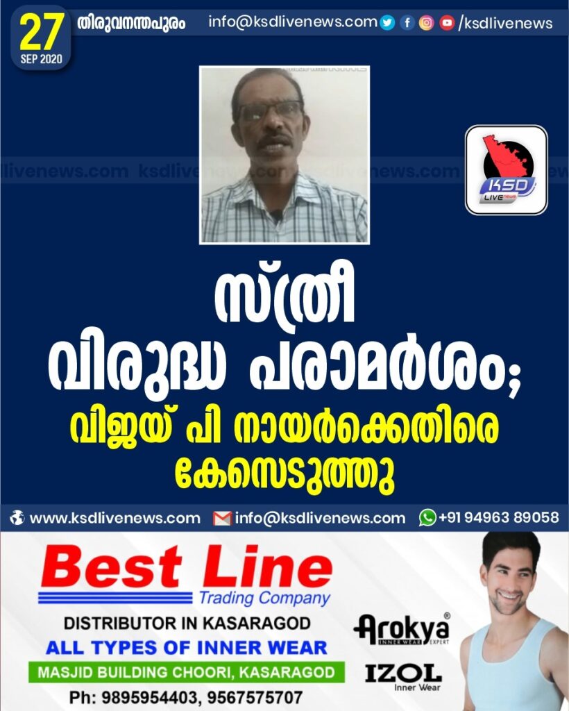 സ്ത്രീ വിരുദ്ധ പരാമർശം ; വിജയ് പി നായർക്കെതിരെ കേസെടുത്തു