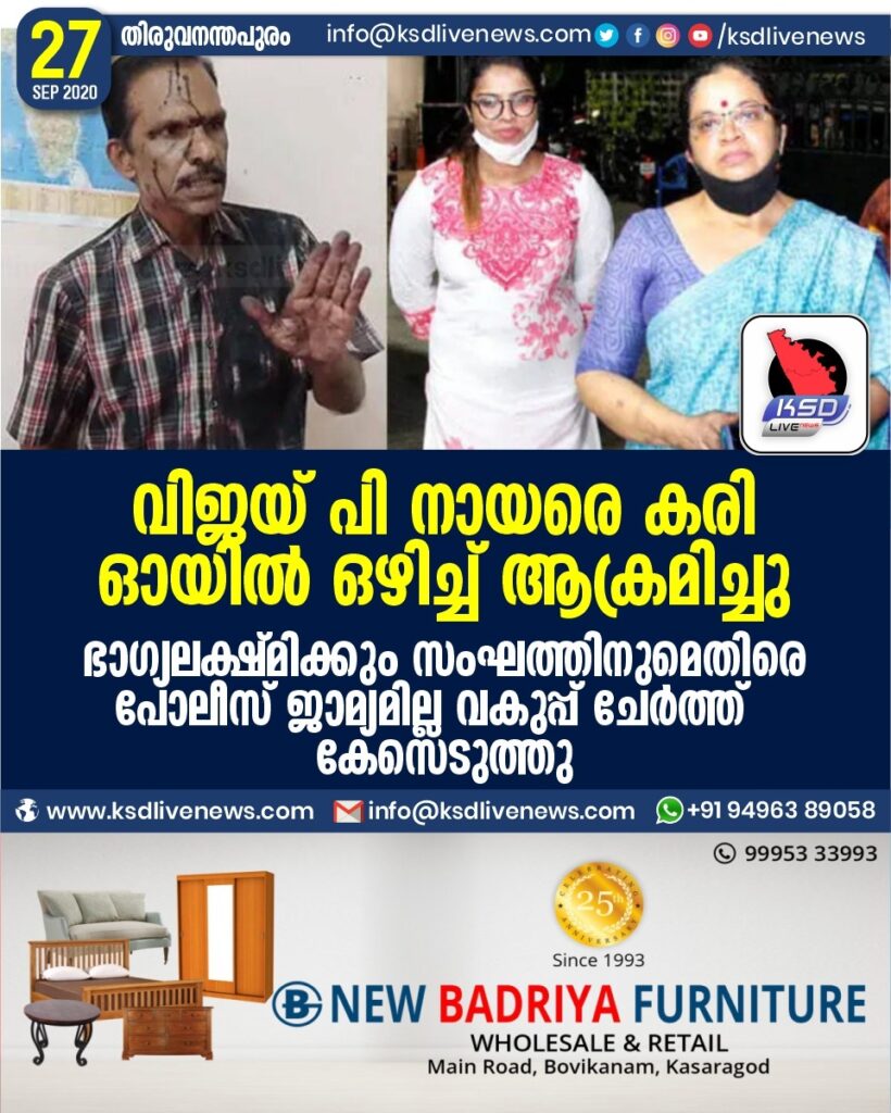വിജയ് പി നായരെ കരി ഓയിൽ ഒഴിച്ച് ആക്രമിച്ചു : ഭാഗ്യലക്ഷ്മിക്കും സംഘത്തിനുമെതിരെ പോലീസ് ജാമ്യമില്ല വകുപ്പ് ചേർത്ത് കേസെടുത്തു