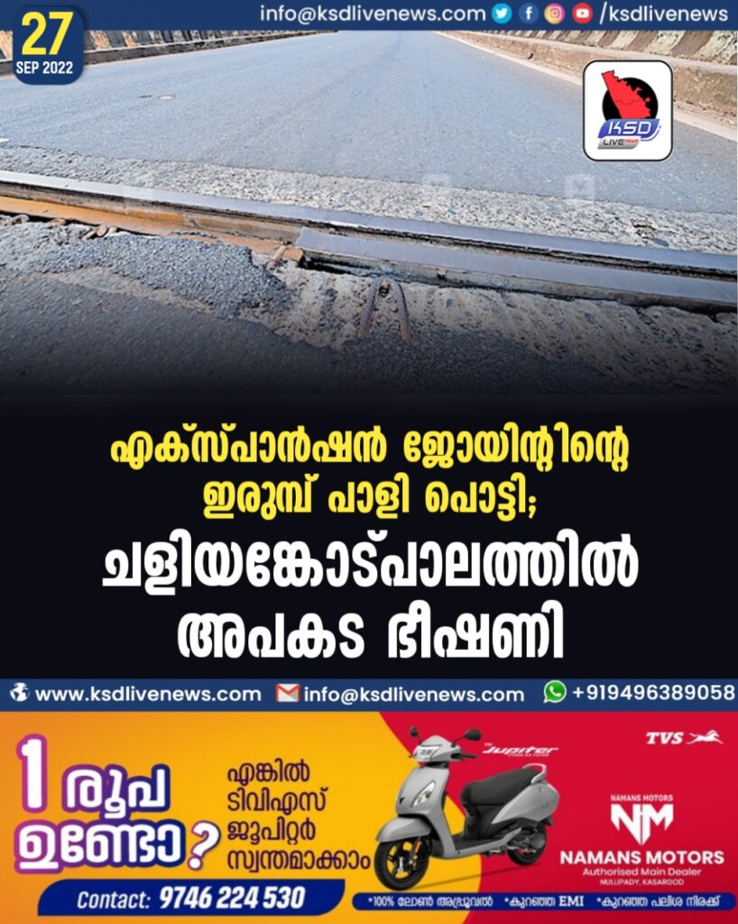 എക്സ്പാൻഷൻ ജോയിന്റിന്റെ ഇരുമ്പ് പാളി പൊട്ടി ; ചളിയങ്കോട്പാലത്തിൽ അപകട ഭീഷണി