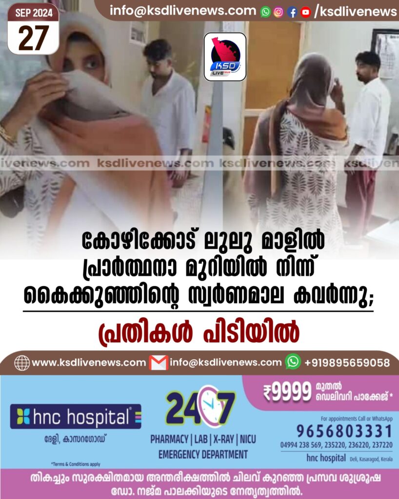 കോഴിക്കോട് ലുലു മാളില് പ്രാര്ത്ഥനാ മുറിയില് നിന്ന് കൈക്കുഞ്ഞിൻ്റെ സ്വര്ണമാല കവര്ന്നു; പ്രതികള് പിടിയില്