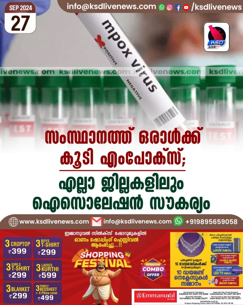 സംസ്ഥാനത്ത് ഒരാള്ക്ക് കൂടി എംപോക്സ്; എല്ലാ ജില്ലകളിലും ഐസൊലേഷന് സൗകര്യം