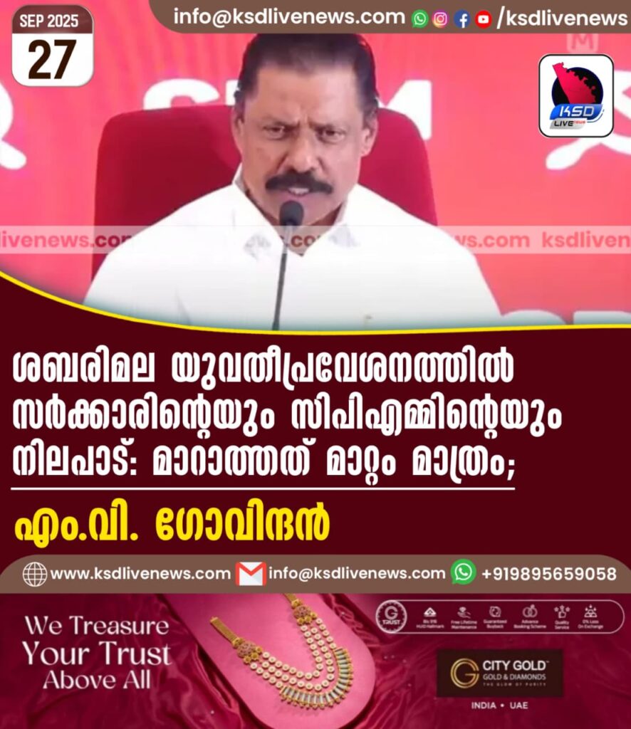 ശബരിമല യുവതീപ്രവേശനത്തിൽ സർക്കാരിന്റെയും സിപിഎമ്മിന്റെയും നിലപാട്: മാറാത്തത് മാറ്റം മാത്രം; എം.വി. ഗോവിന്ദൻ