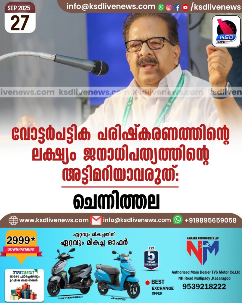 വോട്ടര്‍പട്ടിക പരിഷ്‌കരണത്തിന്റെ ലക്ഷ്യം ജനാധിപത്യത്തിന്റെ അട്ടിമറിയാവരുത്: ചെന്നിത്തല