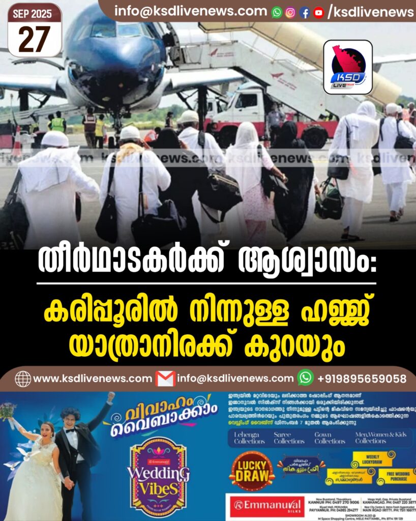 തീർഥാടകർക്ക് ആശ്വാസം; കരിപ്പൂരിൽ നിന്നുള്ള ഹജ്ജ് യാത്രാനിരക്ക് കുറയും