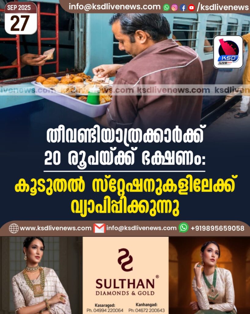 തീവണ്ടിയാത്രക്കാർക്ക് 20 രൂപയ്ക്ക് ഭക്ഷണം: കൂടുതൽ സ്റ്റേഷനുകളിലേക്ക് വ്യാപിപ്പിക്കുന്നു