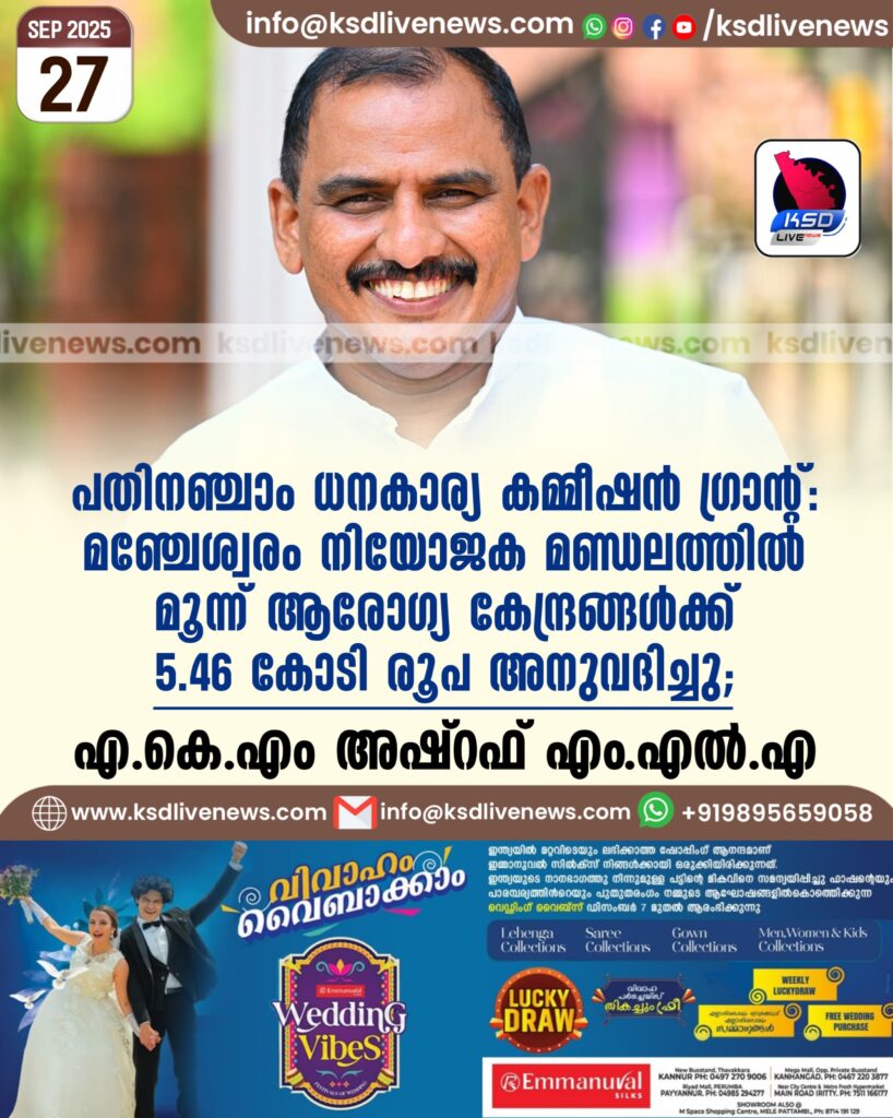 മഞ്ചേശ്വരം നിയോജക മണ്ഡലത്തിൽ മൂന്ന് ആരോഗ്യ കേന്ദ്രങ്ങൾക്ക് 5.46 കോടി രൂപ അനുവദിച്ചു; എ.കെ.എം അഷ്റഫ് എം.എൽ.എ