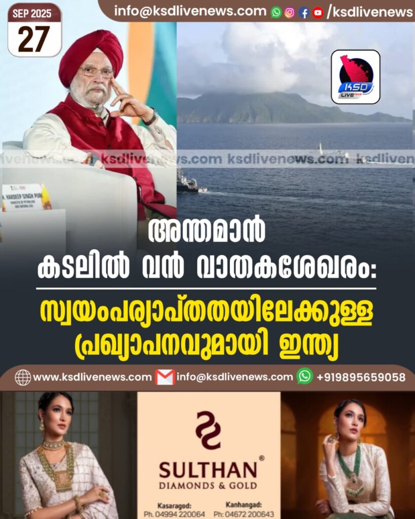 ന്യൂഡല്‍ഹി: റഷ്യയില്‍നിന്നുള്ള എണ്ണ ഇറക്കുമതി വിവാദവും യുഎസ് അധിക തീരുവയും കത്തിനില്‍ക്കെ ഊര്‍ജമേഖലയില്‍ വന്‍ പ്രഖ്യാപനവുമായി ഇന്ത്യ. അന്തമാന്‍ കടലില്‍ ഗണ്യമായതോതില്‍ പ്രകൃതിവാതക സാന്നിധ്യം റിപ്പോര്‍ട്ട് ചെയ്യപ്പെട്ടിട്ടുണ്ടെന്നും ഇത് ഇന്ത്യയുടെ ആഴക്കടല്‍ പര്യവേക്ഷണത്തിന് വലിയ ഉത്തേജനമാകുമെന്നും കേന്ദ്രമന്ത്രി ഹര്‍ദീപ് സിങ് പുരി അറിയിച്ചു.