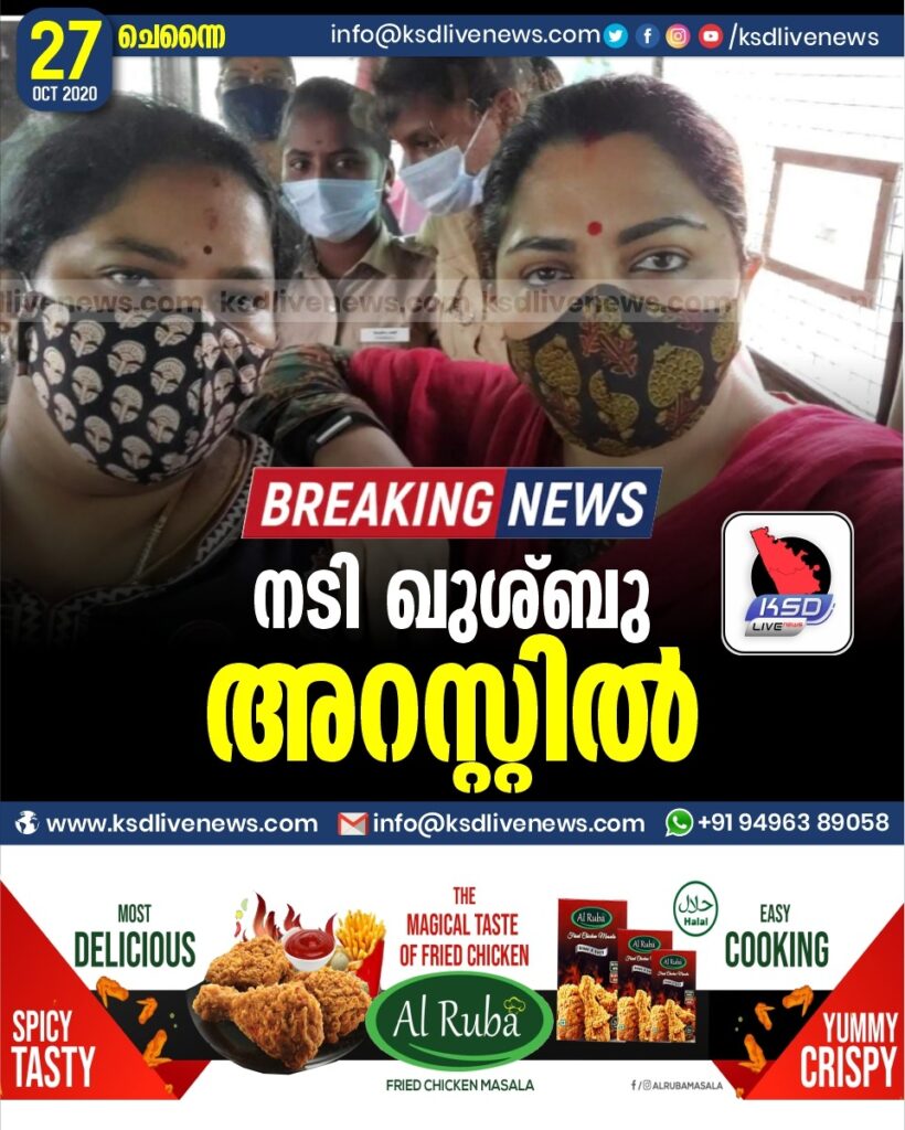നടി ഖുശ്ബു അറസ്റ്റിൽ