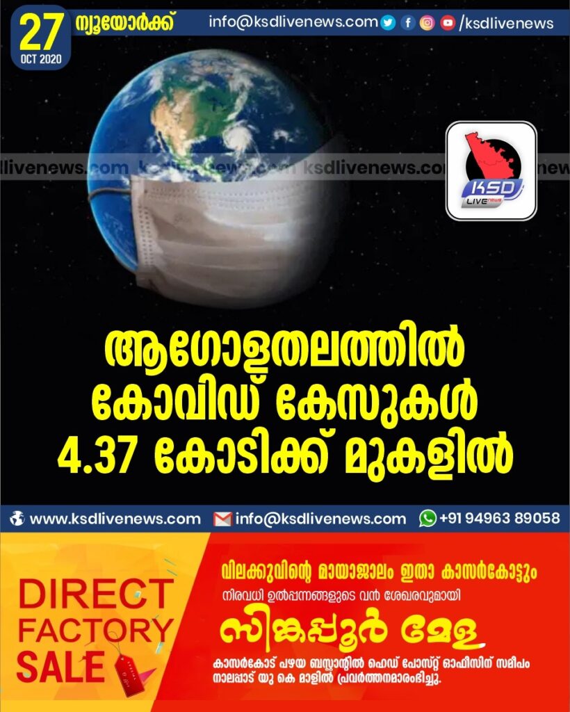 ആഗോളതലത്തിൽ കോവിഡ് കേസുകൾ 4.37 കോടിക്ക് മുകളിൽ