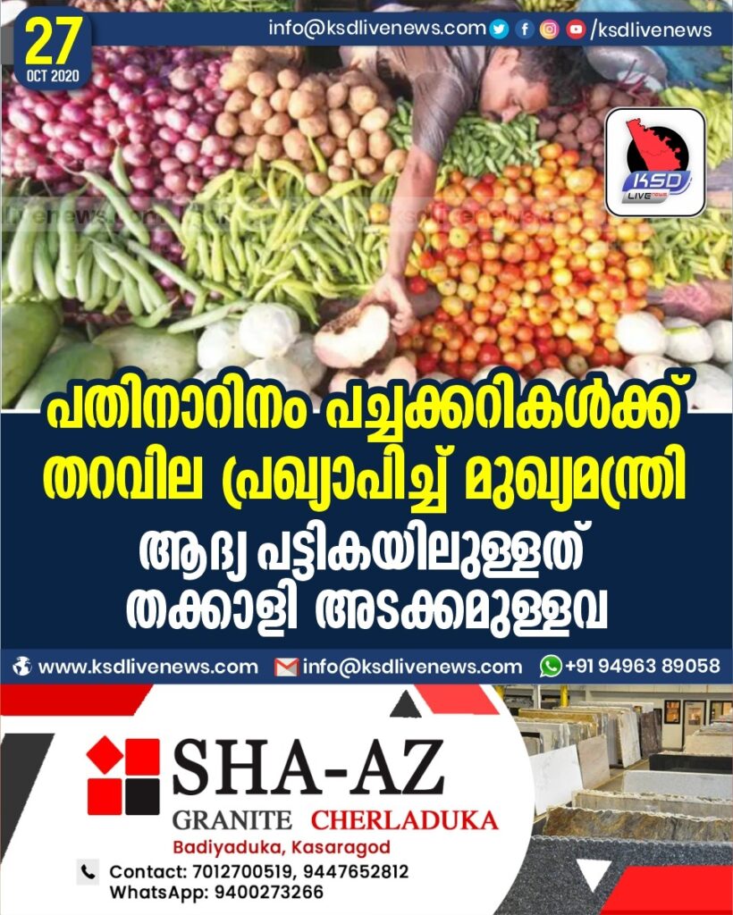 പതിനാറിനം പച്ചക്കറികൾക്ക് തറവില പ്രഖ്യാപിച്ച് മുഖ്യമന്ത്രി ; ആദ്യ പട്ടികയിലുള്ളത് തക്കാളി അടക്കമുള്ളവ