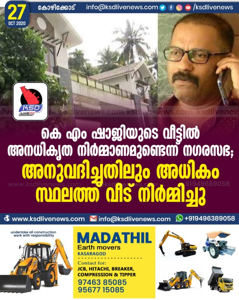 കെ എം ഷാജിയുടെ വീട്ടില്‍ അനധികൃത നിര്‍മ്മാണമുണ്ടെന്ന് നഗരസഭ; അനുവദിച്ചതിലും അധികം സ്ഥലത്ത് വീട് നിര്‍മ്മിച്ചു