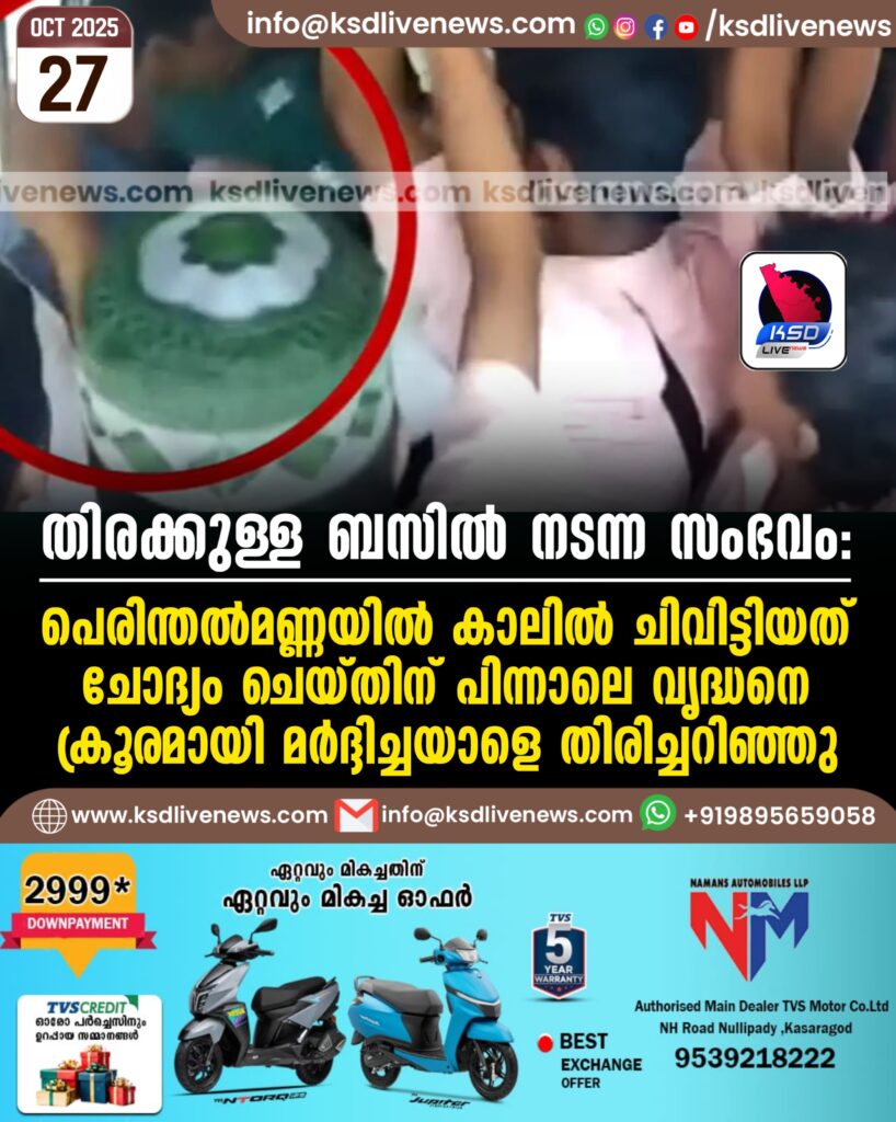 തിരക്കുള്ള ബസില് നടന്ന സംഭവം: പെരിന്തല്മണ്ണയില് കാലില് ചിവിട്ടിയത് ചോദ്യം ചെയ്തിന് പിന്നാലെ വൃദ്ധനെ ക്രൂരമായി മര്ദ്ദിച്ചയാളെ തിരിച്ചറിഞ്ഞു