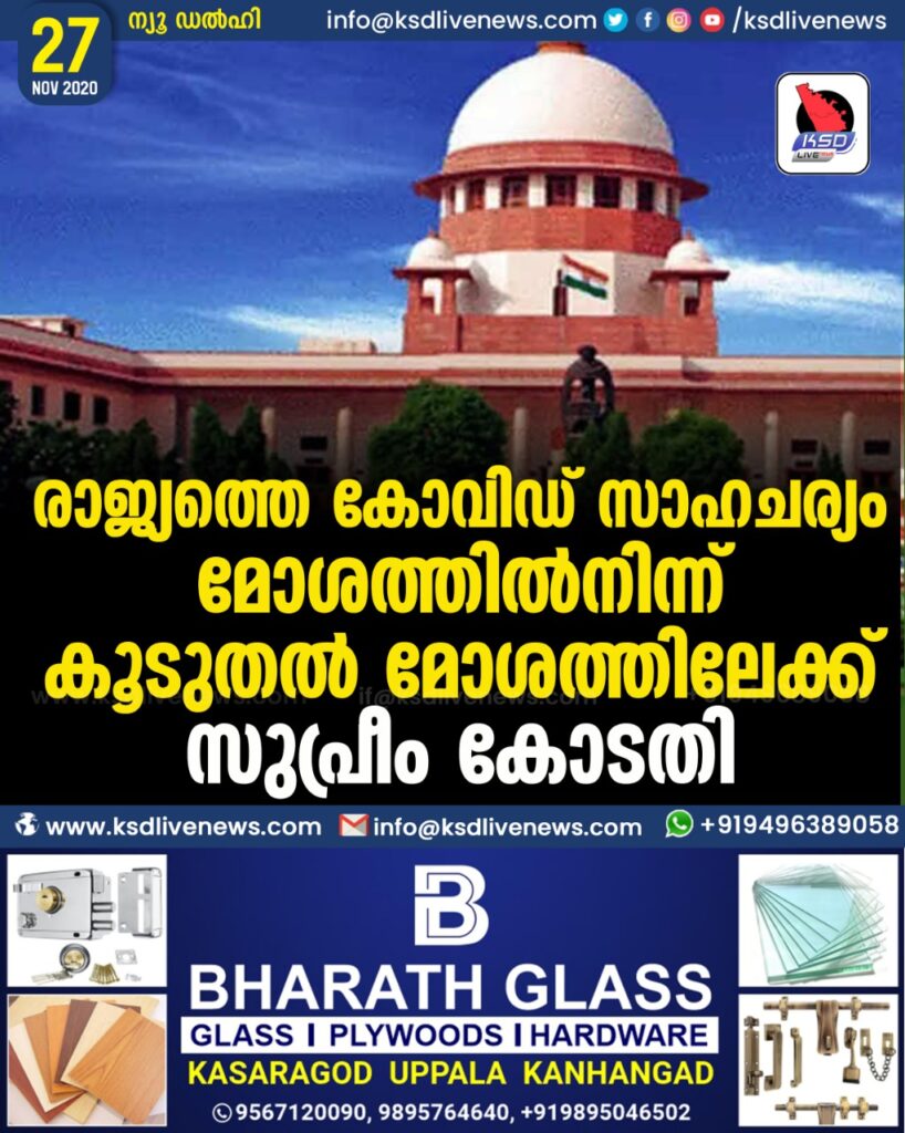 രാജ്യത്തെ കോവിഡ് സാഹചര്യം മോശത്തില്നിന്ന് കൂടുതല് മോശത്തിലേക്ക്-സുപ്രീം കോടതി