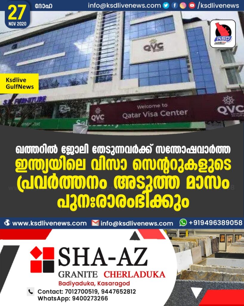 ഖത്തറിൽ ജോലി തേടുന്നവർക്ക് സന്തോഷവാർത്ത , ഇന്ത്യയിലെ വിസാ സെന്ററുകളുടെ പ്രവർത്തനം അടുത്ത മാസം പുനഃരാരംഭിക്കും