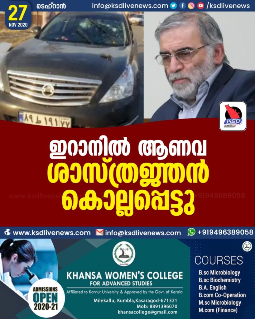 ഇറാനിൽ ആണവ ശാസ്ത്രജ്ഞൻ കൊല്ലപ്പെട്ടു