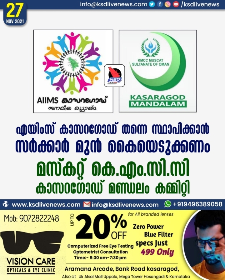 എയിംസ് കാസറഗോഡ് തന്നെ സ്ഥാപിക്കാൻ സർക്കാർ മുൻ കൈയെടുക്കണം – മസ്കറ്റ് കെ.എം.സി.സി കാസറഗോഡ് മണ്ഡലം കമ്മിറ്റി