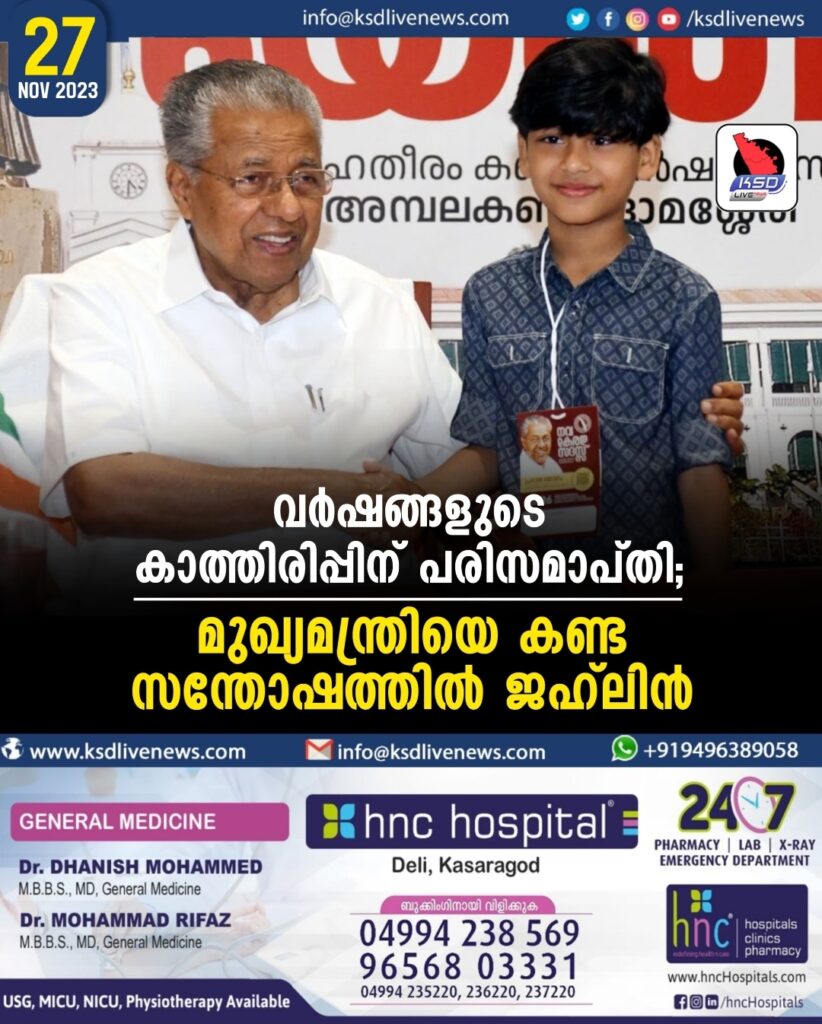 വർഷങ്ങളുടെ കാത്തിരിപ്പിന് പരിസമാപ്തി; മുഖ്യമന്ത്രിയെ കണ്ട സന്തോഷത്തിൽ ജഹ്ലിൻ