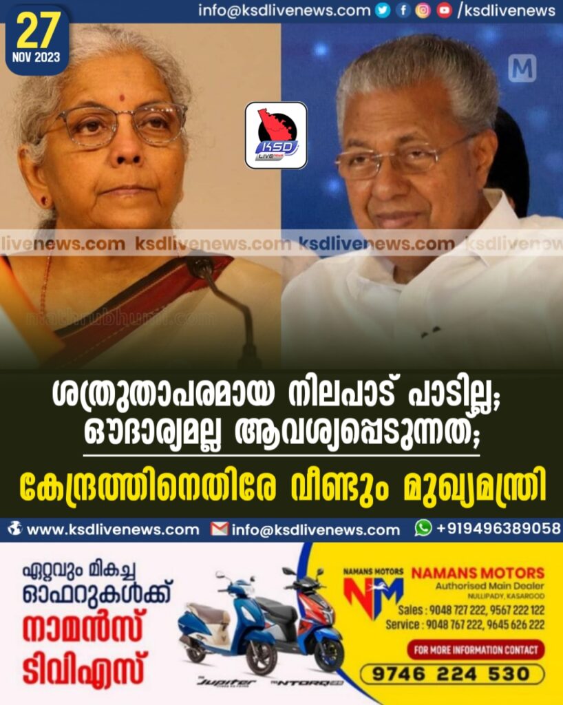 ശത്രുതാപരമായ നിലപാട് പാടില്ല, ഔദാര്യമല്ല ആവശ്യപ്പെടുന്നത്; കേന്ദ്രത്തിനെതിരേ വീണ്ടും മുഖ്യമന്ത്രി