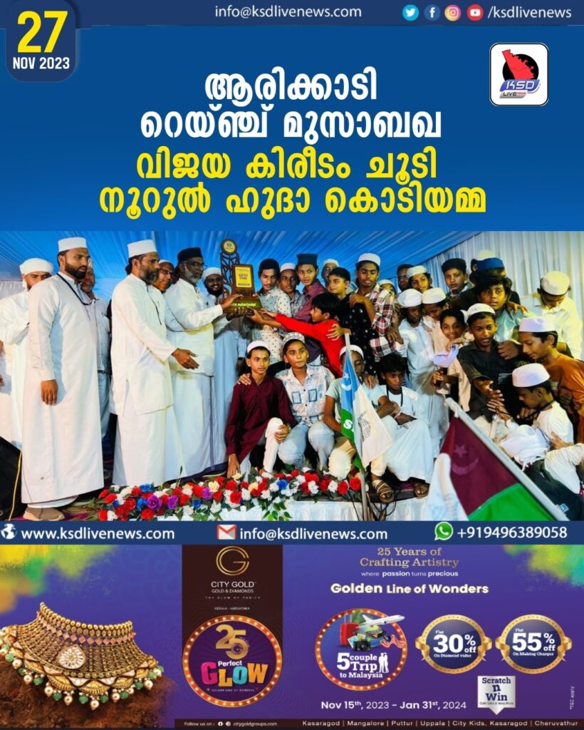 ആരിക്കാടി റെയ്ഞ്ച് മുസാബഖ വിജയ കിരീടം ചൂടി നൂറുൽ ഹുദാ കൊടിയമ്മ