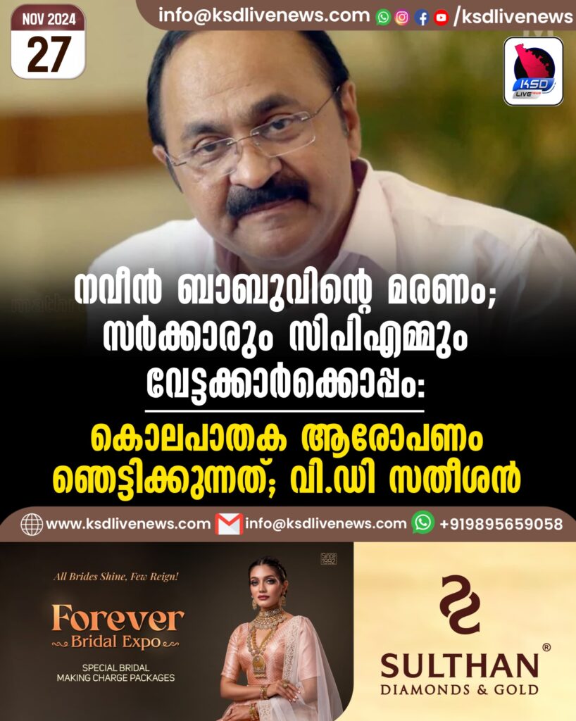 നവീൻ ബാബുവിന്റെ മരണം; സര്ക്കാരും സിപിഎമ്മും വേട്ടക്കാര്ക്കൊപ്പം: കൊലപാതക ആരോപണം ഞെട്ടിക്കുന്നത്; വി.ഡി സതീശന്