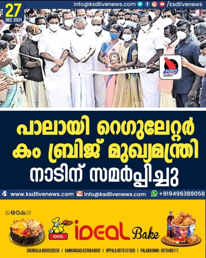 പാലായി റെഗുലേറ്റർ കം ബ്രിജ് മുഖ്യമന്ത്രി നാടിന് സമർപ്പിച്ചു