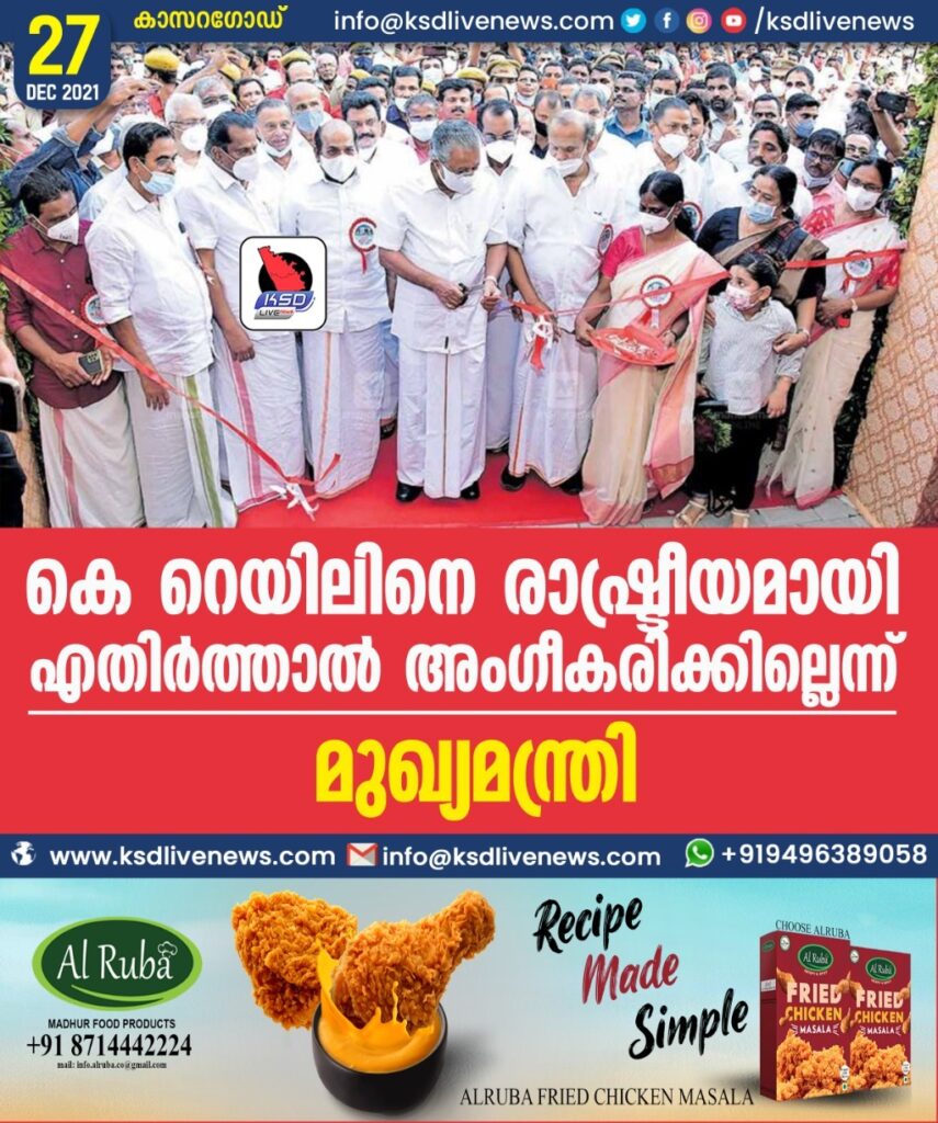 കാസർകോട് ∙ ‌കെ റെയിൽ പദ്ധതി നടപ്പിലാക്കാൻ സമ്മതിക്കില്ല എന്ന മുഷ്കോടു കൂടി ആരെങ്കിലും വന്നാൽ അത് അംഗീകരിച്ചു കൊടുക്കുന്ന സർക്കാരല്ല എൽഡിഎഫിന്റേതെന്ന് മുഖ്യമന്ത്രി പിണറായി വിജയൻ. സിപിഎം ജില്ലാ കമ്മിറ്റി ഓഫിസായ എകെജി ഭവനു വേണ്ടി നിർമിച്ച പുതിയ കെട്ടിടം ഉദ്ഘാടനം ചെയ്യുകയായിരുന്നു അദ്ദേഹം.പദ്ധതിയുമായി ബന്ധപ്പെട്ട് എന്തെങ്കിലും വ്യക്തതക്കുറവുണ്ടെങ്കിൽ അത് പരിഹരിക്കാൻ സർക്കാർ തയാറാണ്. ജനങ്ങളുടെ എതിർപ്പുകൾ ന്യായമാണെങ്കിൽ അംഗീകരിക്കും.