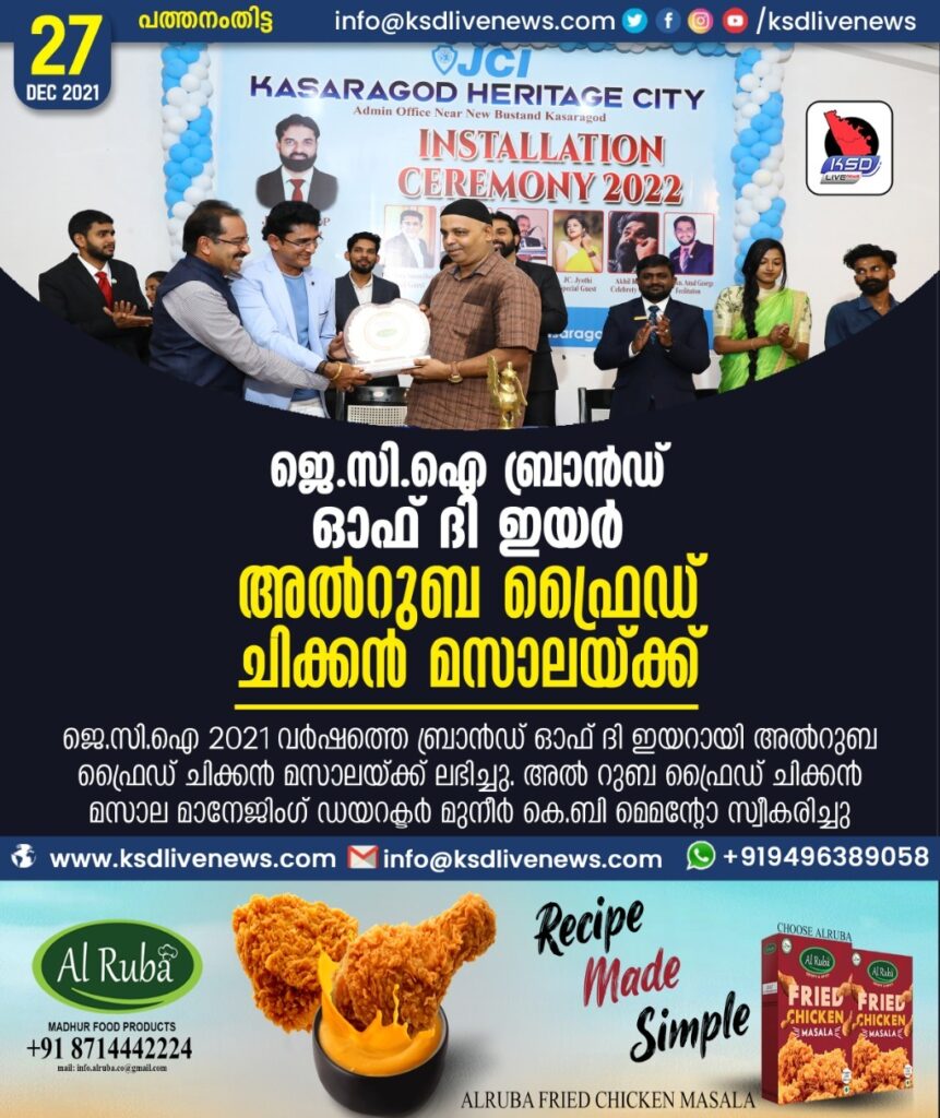 ജെ.സി.ഐ ബ്രാൻഡ് ഓഫ് ദി ഇയർ അൽറുബ ഫ്രൈഡ് ചിക്കൻ മസാലയ്ക്ക്