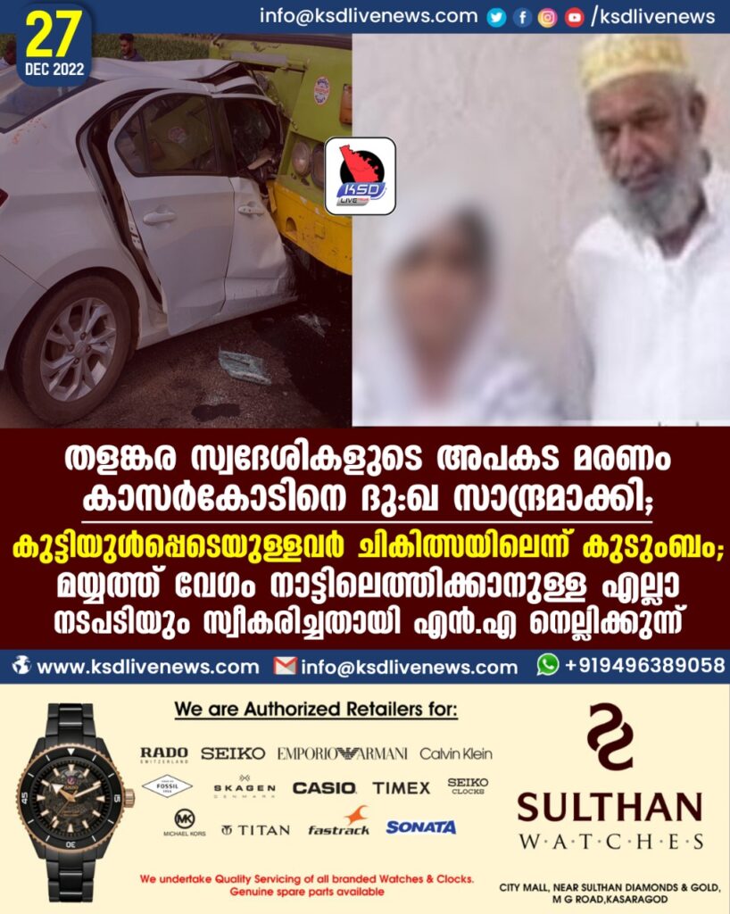 തളങ്കര സ്വദേശികളുടെ അപകട മരണം കാസർകോടിനെ ദു:ഖ സാന്ദ്രമാക്കി; കുട്ടിയുൾപ്പെടെയുള്ളവർ ചികിത്സയിലെന്ന് കുടുംബം; മയ്യത്ത് വേഗം നാട്ടിലെത്തിക്കാനുള്ള എല്ലാ നടപടിയും സ്വീകരിച്ചതായി എൻ.എ നെല്ലിക്കുന്ന്