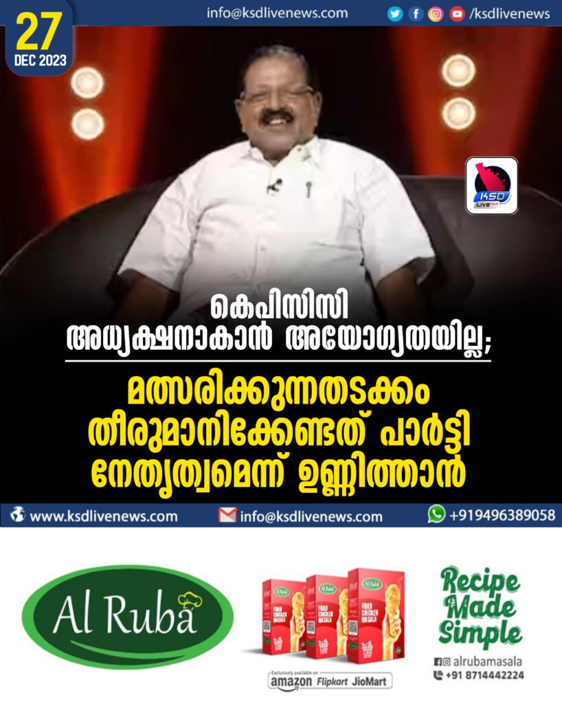കെപിസിസി അധ്യക്ഷനാകാൻ അയോഗ്യതയില്ല’; മത്സരിക്കുന്നതടക്കം തീരുമാനിക്കേണ്ടത് പാർട്ടി നേതൃത്വമെന്ന് ഉണ്ണിത്താൻ
