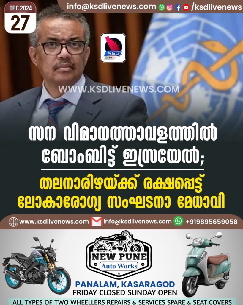 സന വിമാനത്താവളത്തില്‍ ബോംബിട്ട് ഇസ്രയേല്‍; തലനാരിഴയ്ക്ക് രക്ഷപ്പെട്ട് ലോകാരോഗ്യ സംഘടനാ മേധാവി