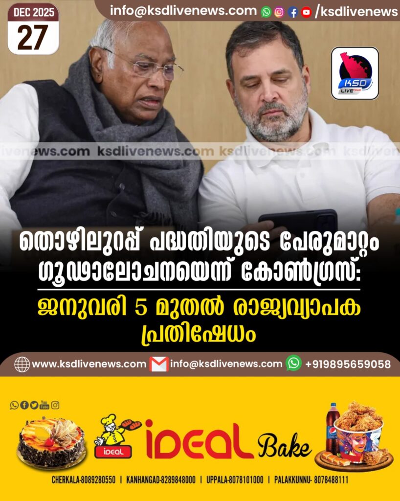 തൊഴിലുറപ്പ് പദ്ധതിയുടെ പേരുമാറ്റം ഗൂഢാലോചനയെന്ന് കോൺഗ്രസ്; ജനുവരി 5 മുതൽ രാജ്യവ്യാപക പ്രതിഷേധം
