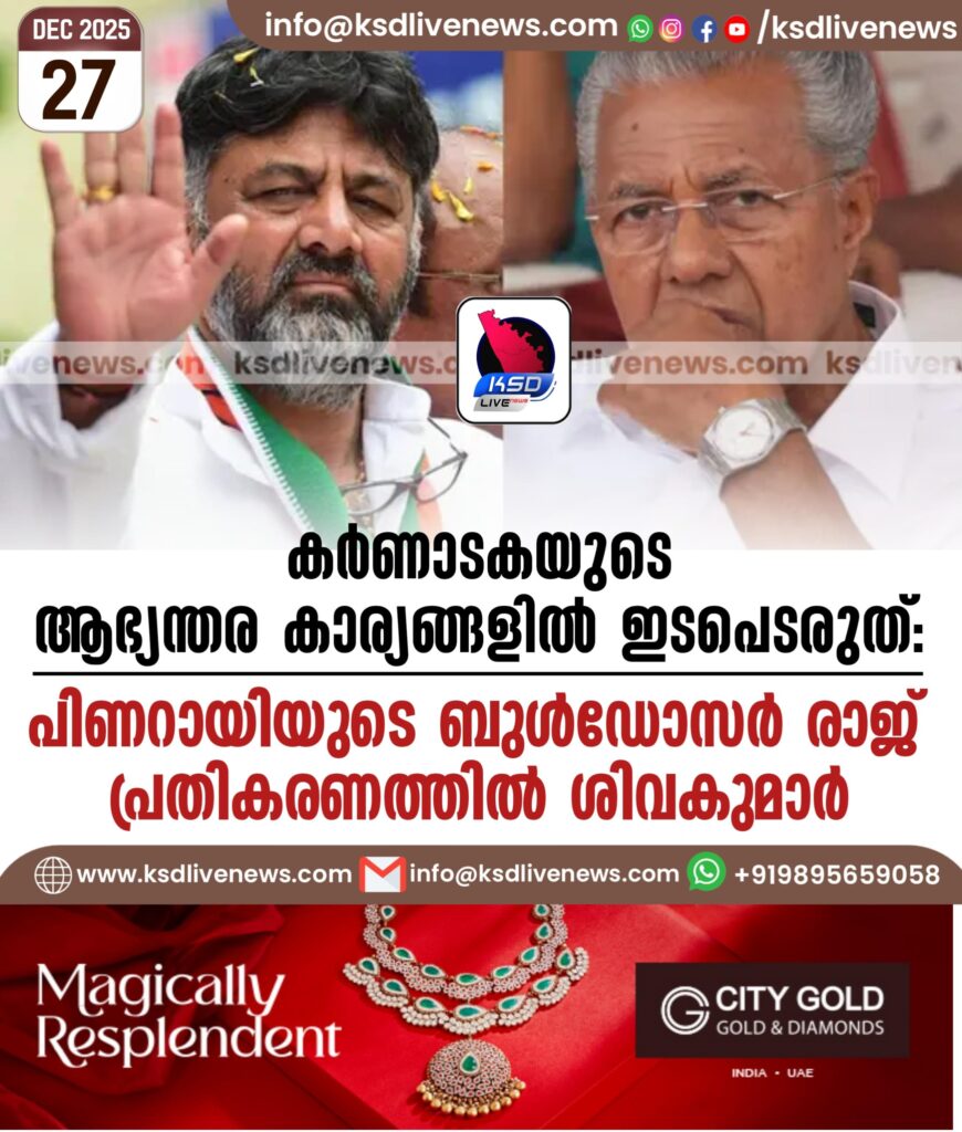 ‘കർണാടകയുടെ ആഭ്യന്തര കാര്യങ്ങളിൽ ഇടപെടരുത്’; പിണറായിയുടെ ‘ബുൾഡോസർ രാജ്’ പ്രതികരണത്തിൽ ശിവകുമാർ