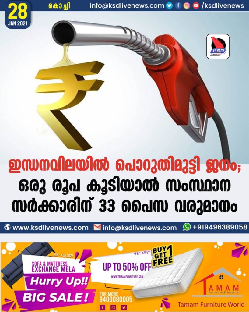 ഇന്ധനവിലയില് പൊറുതിമുട്ടി ജനം; ഒരു രൂപ കൂടിയാല് സംസ്ഥാന സര്ക്കാരിന് 33 പൈസ വരുമാനം