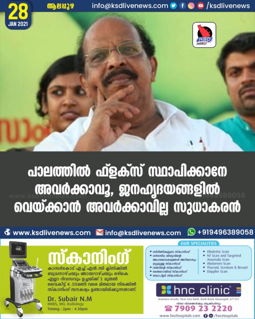 പാലത്തില് ഫ്ളക്സ് സ്ഥാപിക്കാനേ അവര്ക്കാവൂ, ജനഹൃദയങ്ങളില് വെയ്ക്കാന് അവര്ക്കാവില്ല- സുധാകരൻ