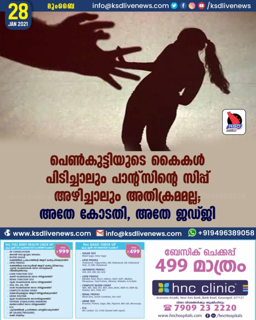പെണ്കുട്ടിയുടെ കൈകള് പിടിച്ചാലും പാന്റ്സിന്റെ സിപ്പ് അഴിച്ചാലും അതിക്രമമല്ല; അതേ കോടതി, അതേ ജഡ്ജി