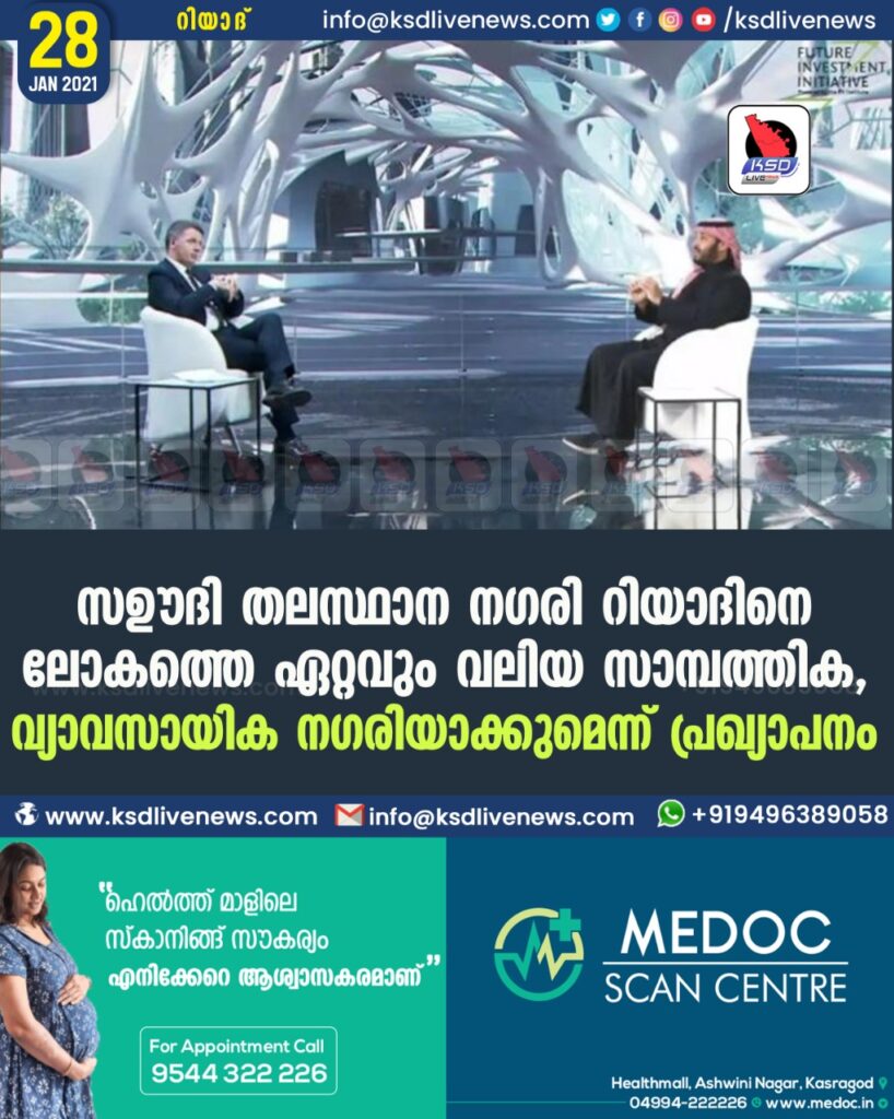സഊദി തലസ്ഥാന നഗരി റിയാദിനെ ലോകത്തെ ഏറ്റവും വലിയ സാമ്പത്തിക, വ്യാവസായിക നഗരിയാക്കുമെന്ന് പ്രഖ്യാപനം