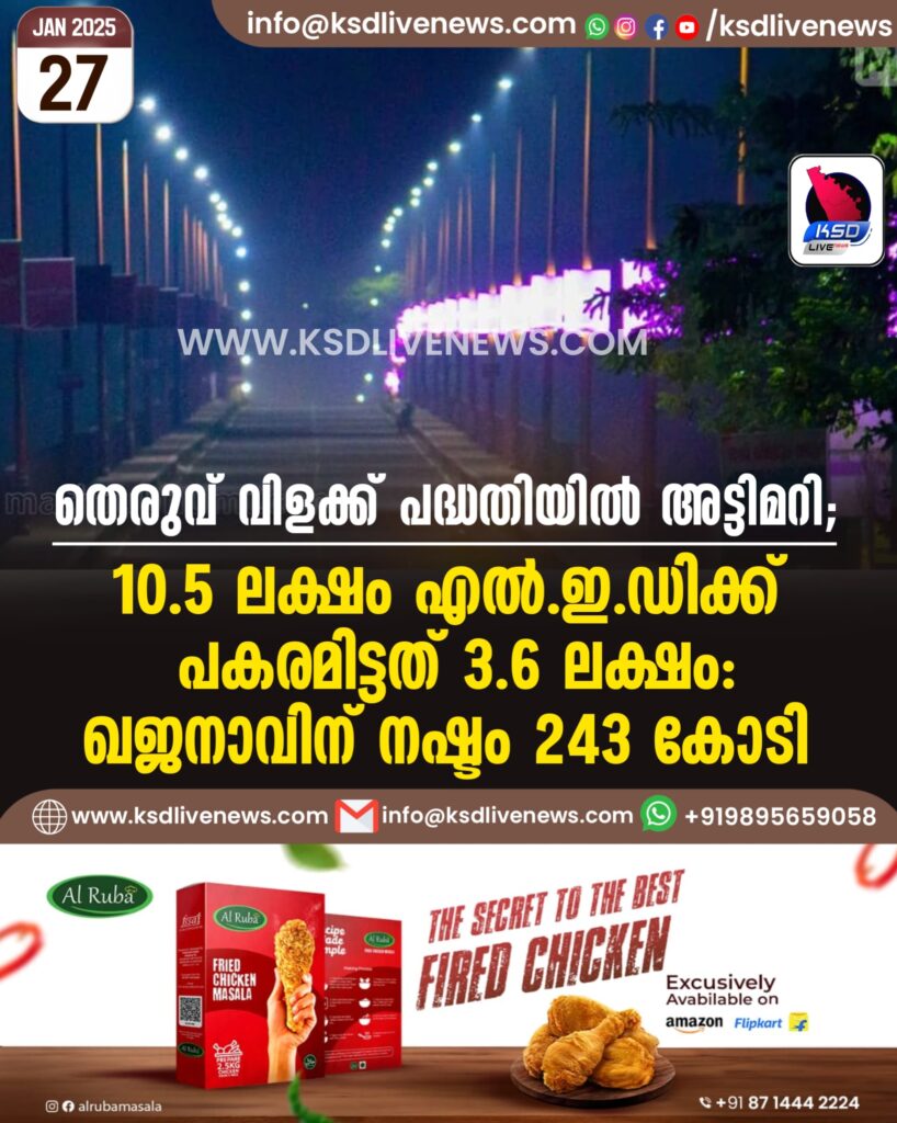 തെരുവ് വിളക്ക് പദ്ധതിയിൽ അട്ടിമറി;10.5 ലക്ഷം LEDക്ക് പകരമിട്ടത് 3.6ലക്ഷം, ഖജനാവിന് നഷ്ടം 243 കോടി