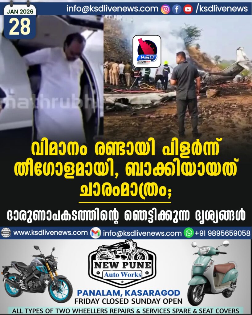 ബാരാമതി: അജിത് പവാർ സഞ്ചരിച്ച വിമാനം തകർന്ന് അഞ്ചുപേർ കൊല്ലപ്പെട്ടതായി ഡിജിസിഎ ഔദ്യോഗികമായി സ്ഥിരീകരിച്ചു. അതിദാരുണാപകടത്തിനാണ് ബരാമതി സാക്ഷ്യംവഹിച്ചത്. പൊതു പരിപാടിയിൽ പങ്കെടുക്കാനായാണ് അജിത് പവാർ തന്റെ തട്ടകമായ ബാരാമതിയിലേക്ക് പുറപ്പെട്ടത്.