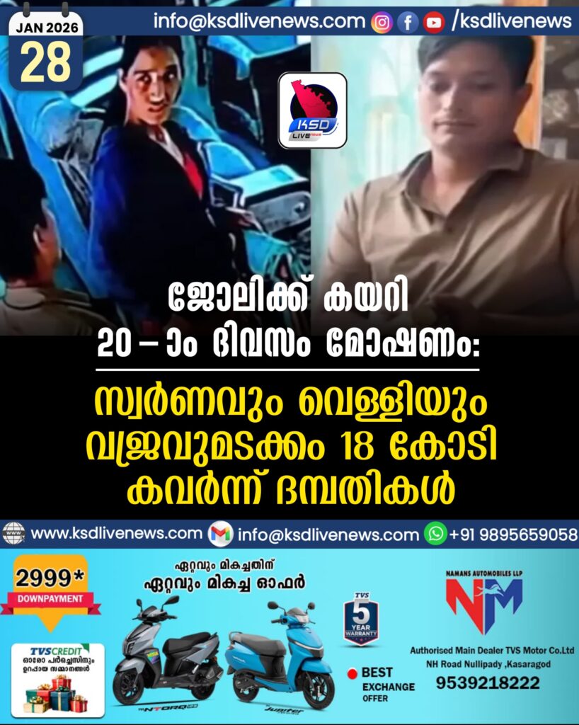 ജോലിക്ക് കയറി 20-ാം ദിവസം മോഷണം: സ്വർണവും വെള്ളിയും വജ്രവുമടക്കം 18 കോടി കവർന്ന് ദമ്പതികൾ