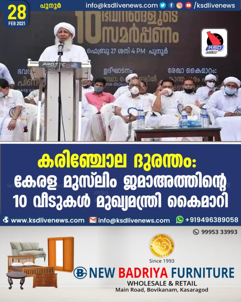 കരിഞ്ചോല ദുരന്തം : കേരള മുസ് ലിം ജമാഅത്തിന്റെ 10 വീടുകൾ മുഖ്യമന്ത്രി കൈമാറി