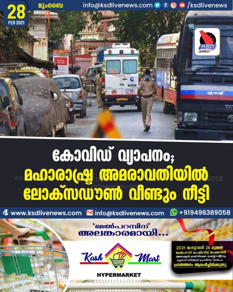 കോവിഡ് വ്യാപനം : മഹാരാഷ്ട്ര അമരാവതിയിൽ ലോക്സഡൗൺ വീണ്ടും നീട്ടി