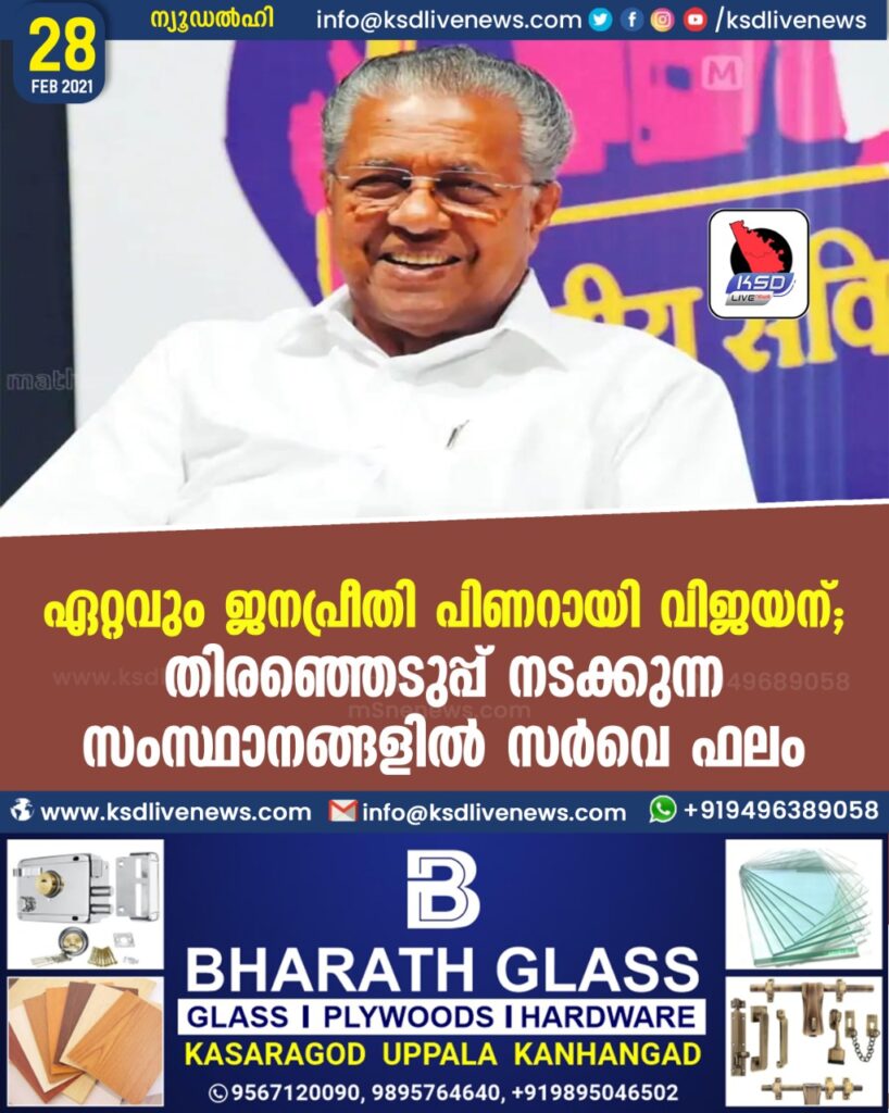 ഏറ്റവും ജനപ്രീതി പിണറായി വിജയന്; തിരഞ്ഞെടുപ്പ് നടക്കുന്ന സംസ്ഥാനങ്ങളില് സര്വെ ഫലം