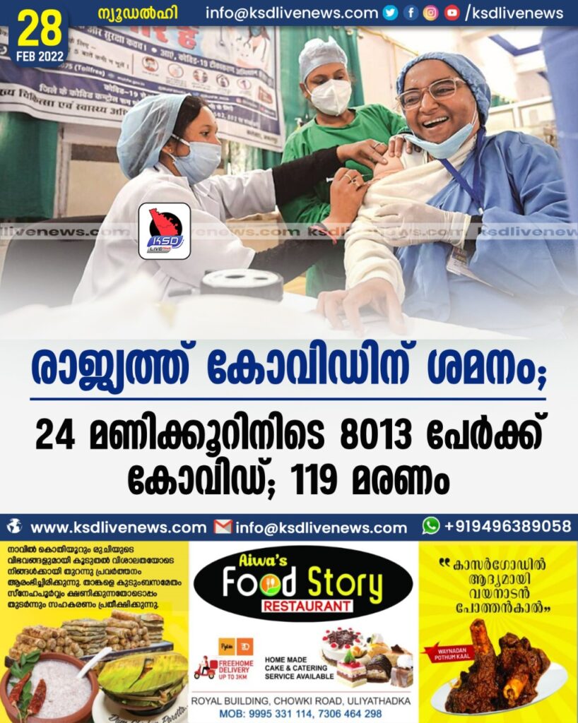 രാജ്യത്ത് കോവിഡിന് ശമനം; 24 മണിക്കൂറിനിടെ 8013 പേർക്ക് കോവിഡ്; 119 മരണം