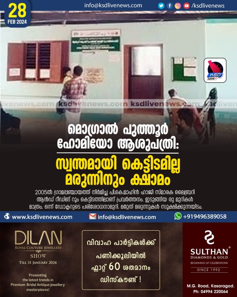 മൊഗ്രാൽപുത്തൂർ ഹോമിയോ ആശുപത്രി: സ്വന്തമായി കെട്ടിടമില്ല മരുന്നിനും ക്ഷാമം